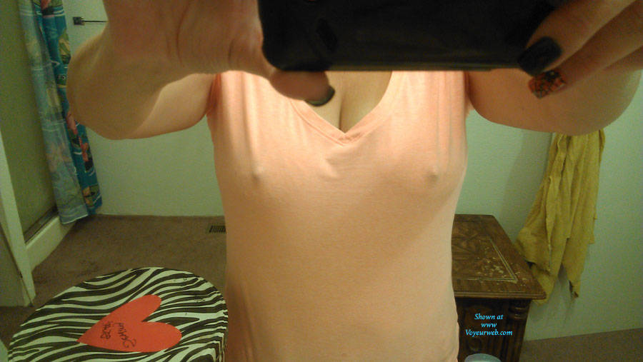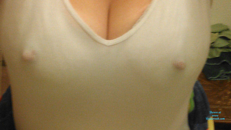 Hard nipples seen through shirt.